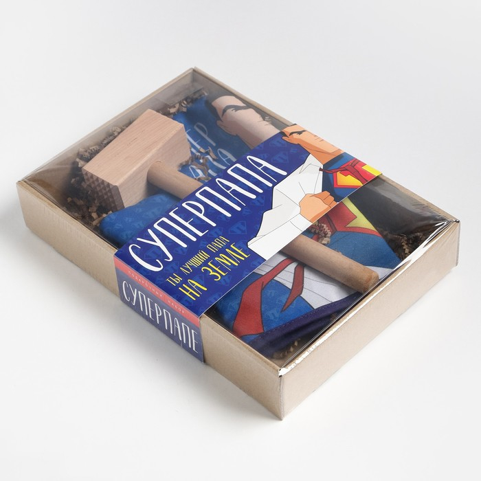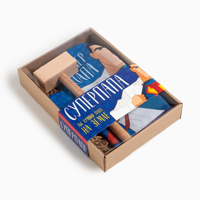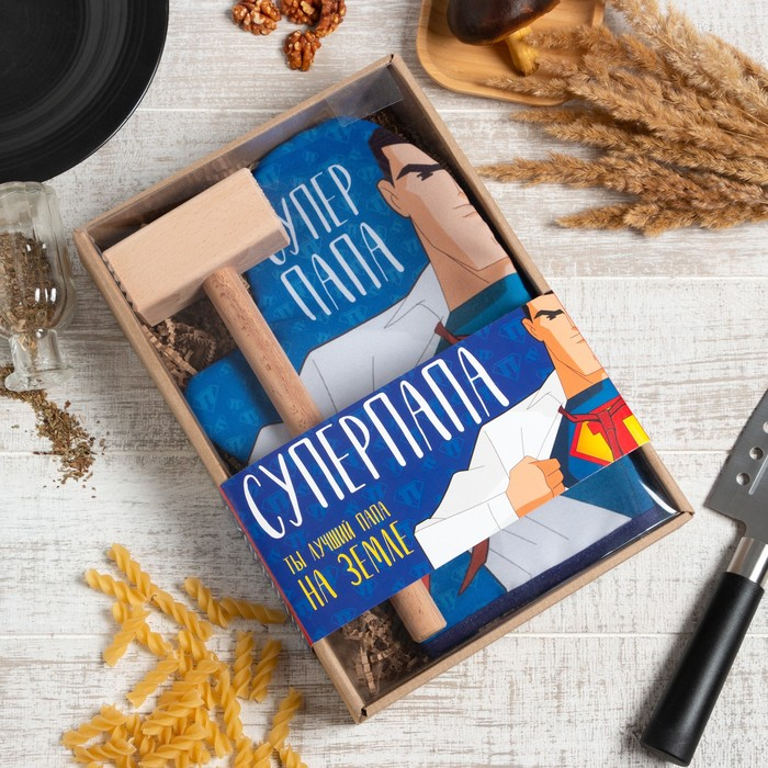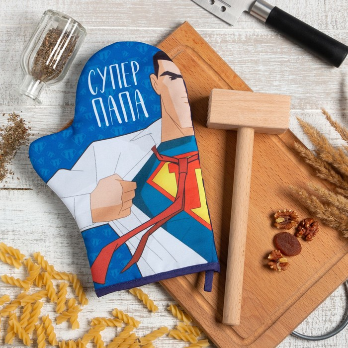 Кухонный набор «Супер папа»,варежка-прихватка 20х28см, молоток деревянный