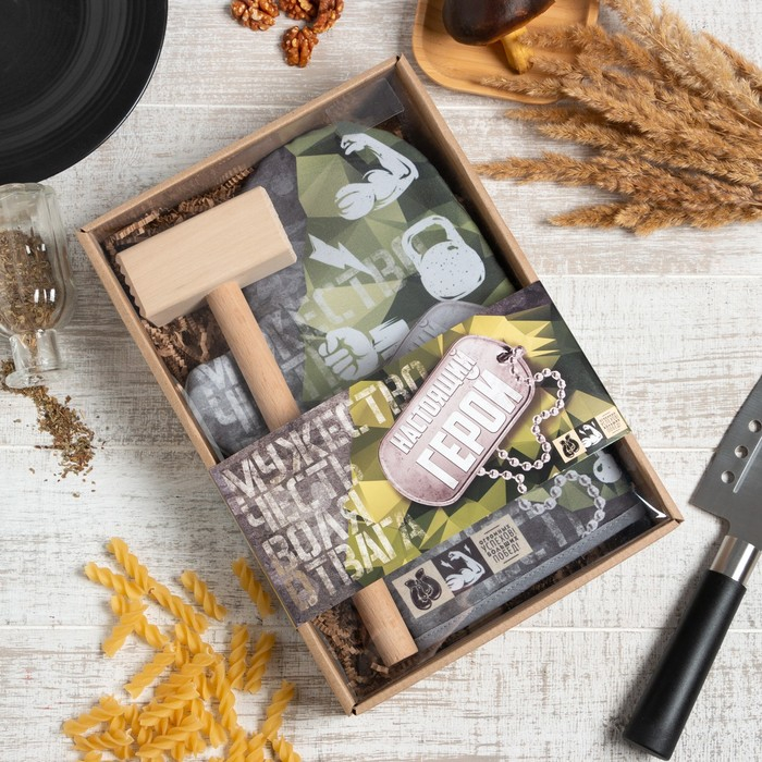Кухонный набор «Настоящий герой»,варежка-прихватка 20х28см, молоток деревянный