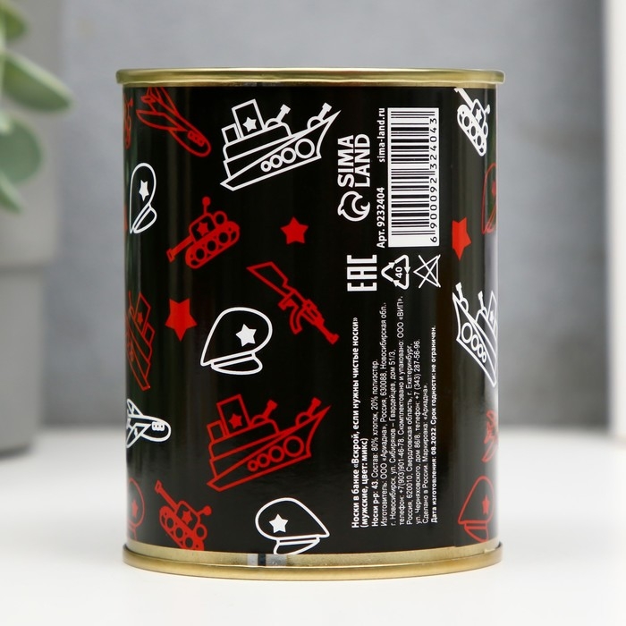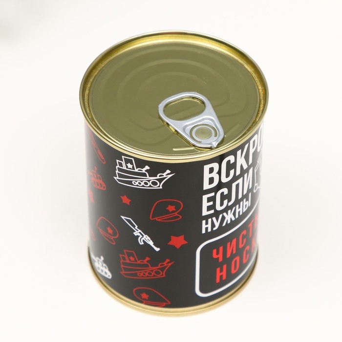 Носки в банке "Вскрой, если нужны чистые носки" (внутри носки мужские, цвет чёрный)
