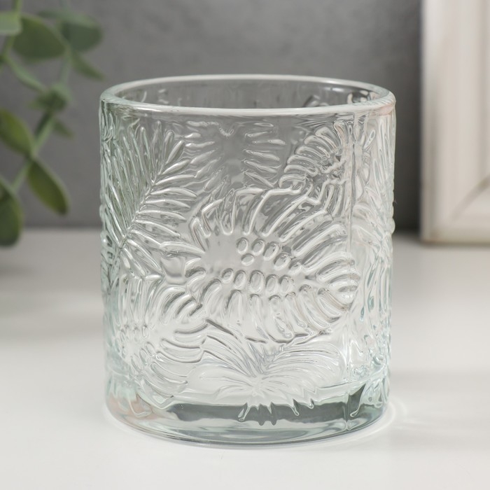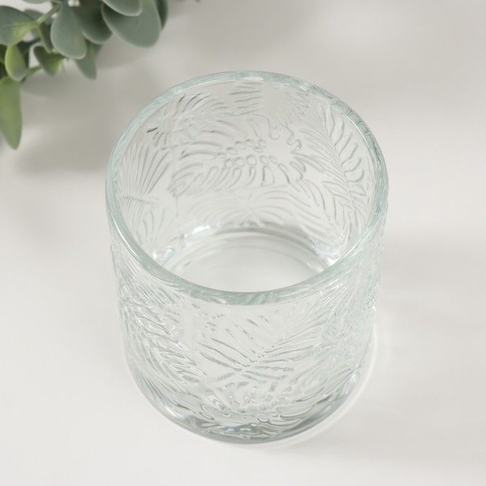 Банка для свечей стекло "Пальмовые листья" прозрачная 200 мл 7х7х8 см