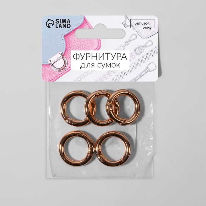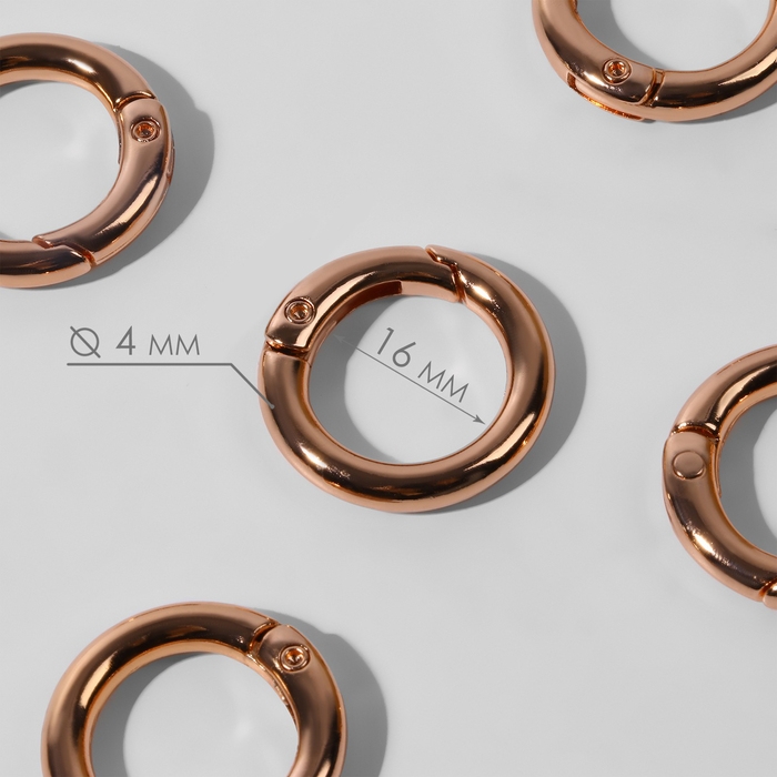 Кольцо-карабин, d = 16/24, толщина - 4 мм, 5 шт, цвет розовое золото