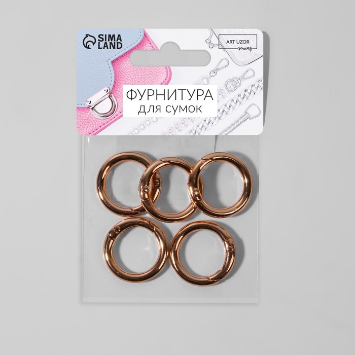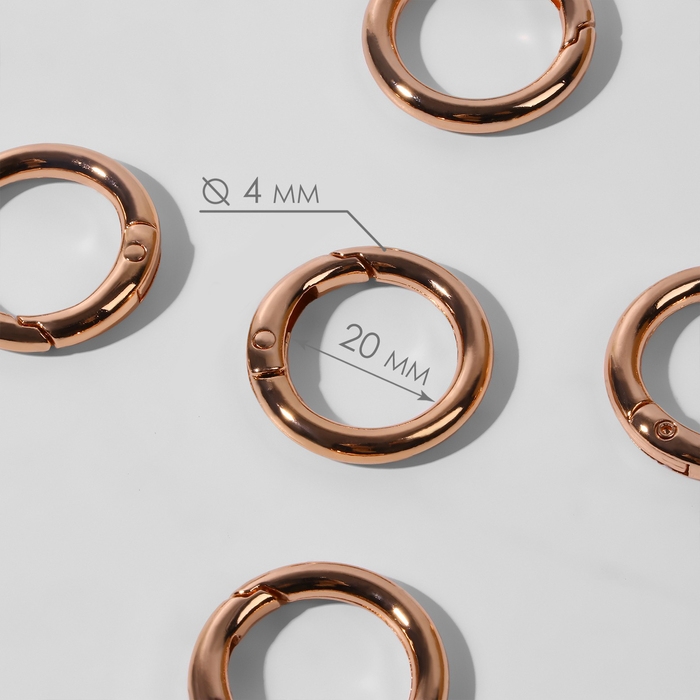 Кольцо-карабин, d = 20/28, толщина - 4 мм, 5 шт, цвет розовое золото