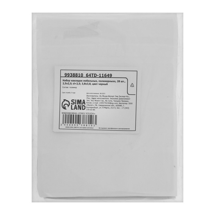 Набор накладок мебельных, полимерныхх, 28 шт., 2,5х2,5; d=2,5; 3,8х3,8, цвет черный