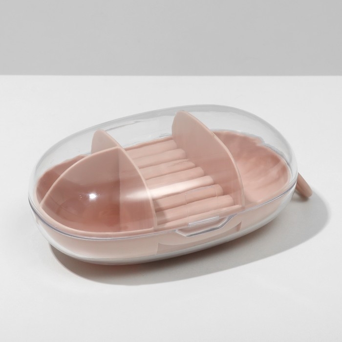Подставка для украшений «Шкатулка портативная» 3 ячейки, 7 полос, 15×8×5 см, цвет розовый