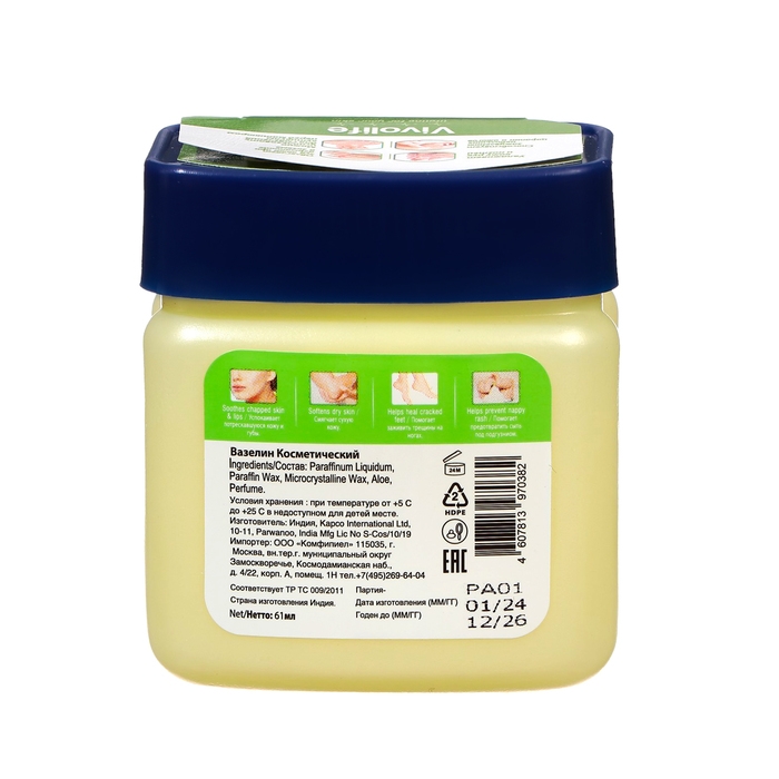 Вазелин косметический Vivolife с ароматом Алоэ Вера, 61 мл