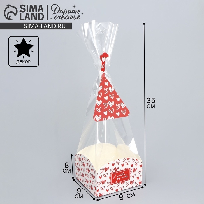 Пакет подарочный с коробкой, упаковка, «Сердца», 9 х 9 х 35 см