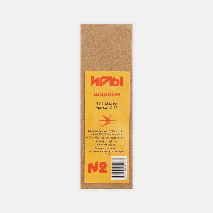 Иглы швейные, для кожи и обуви №2, d = 1,2 мм, 7 см, 10 шт, С-16