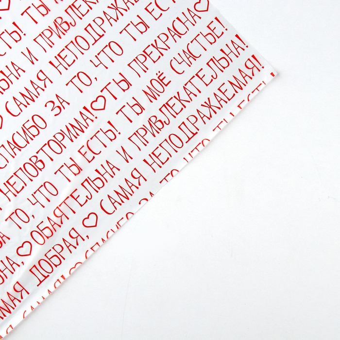 Плёнка для цветов упаковочная тишью влагостойкая «Пожелания», белая, 0.6 x 10 м
