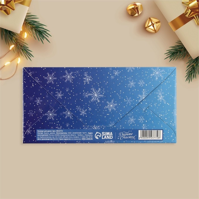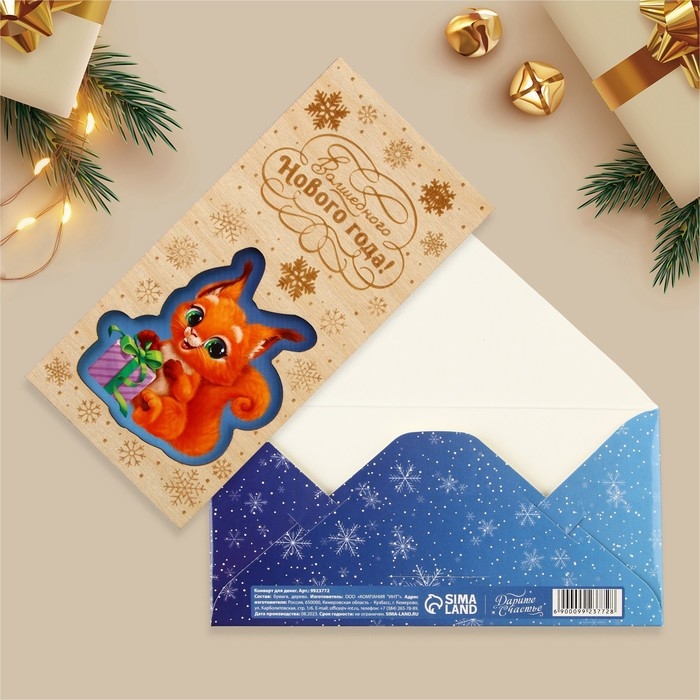 Конверт для денег деревянный резной «Волшебного Нового года!», белка, 16.5 х 8 см, Новый год