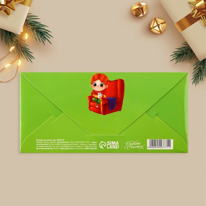 Конверт для денег деревянный резной «Тепла и Уюта в Новом году», ёлка в окне, 16.5 х 8 см, Новый год
