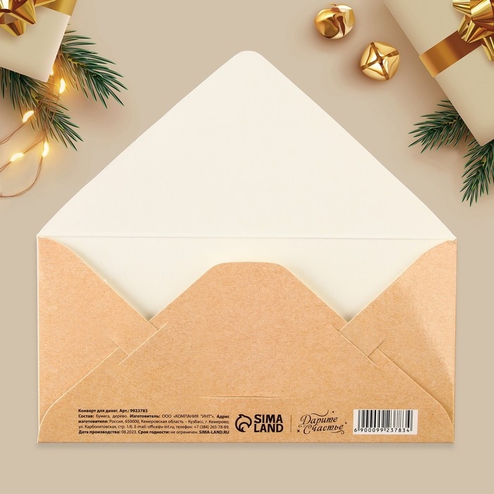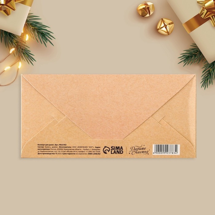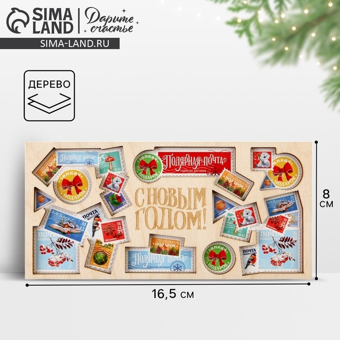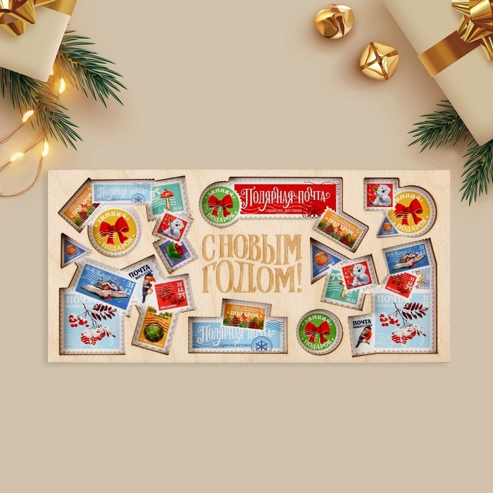 Конверт для денег деревянный резной «С Новым годом!», почтовые марки, 16.5 х 8 см, Новый год