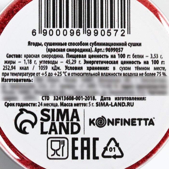 Ягодный порошок сублимированный «Красная смородина» для капкейков и шоколада, 5 г.