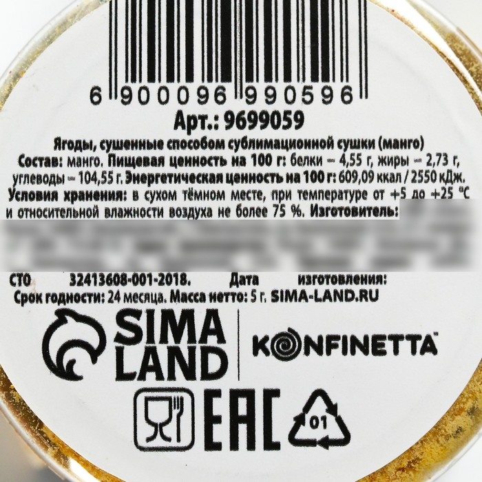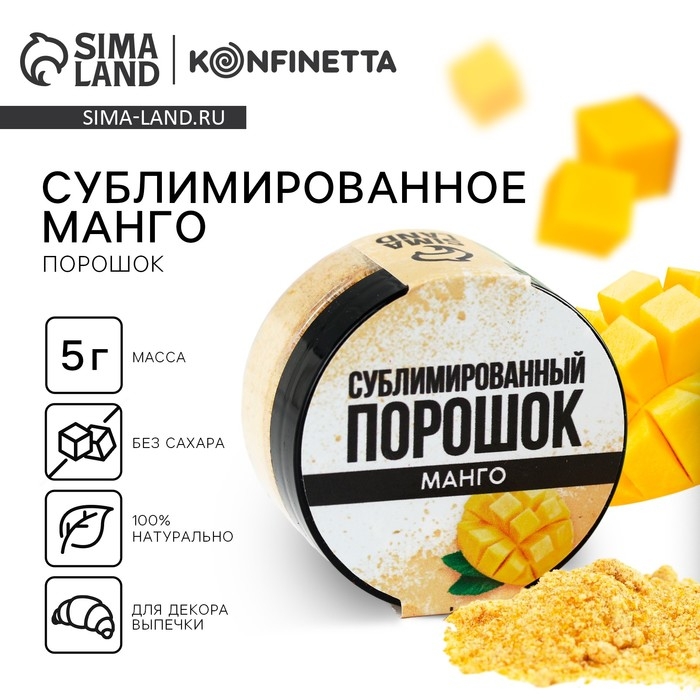 Ягодный порошок сублимированный «Манго» для капкейков и шоколада, 5 г.