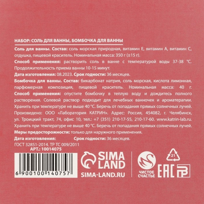 Подарочный набор косметики новогодний «Игристого настроения!», бомбочка для ванны 40 г и соль для ванны 350 г, Новый Год