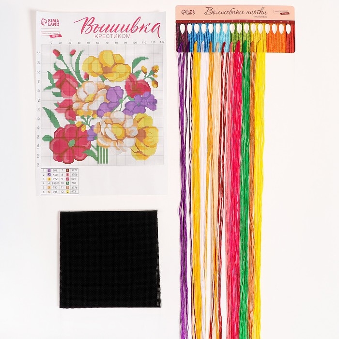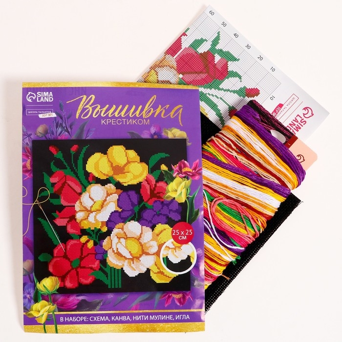 Вышивка крестиком на чёрной канве «Яркий букет», набор для творчества, 25 х 25 см