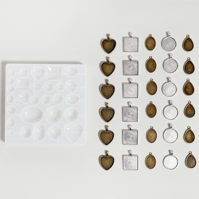 Набор для создания украшений из эпоксидеой смолы, форма, кулоны 5 видов по 5 штук