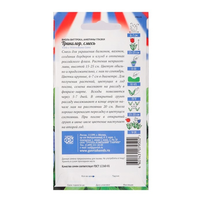 Семена Виола "Триколор", 0,3 г