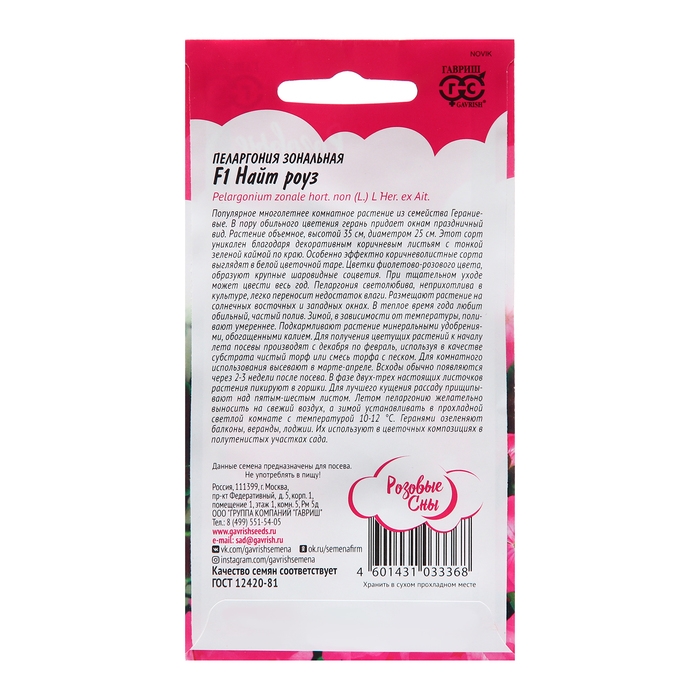 Семена Пеларгония "Найт Роуз", F1, 4 шт.