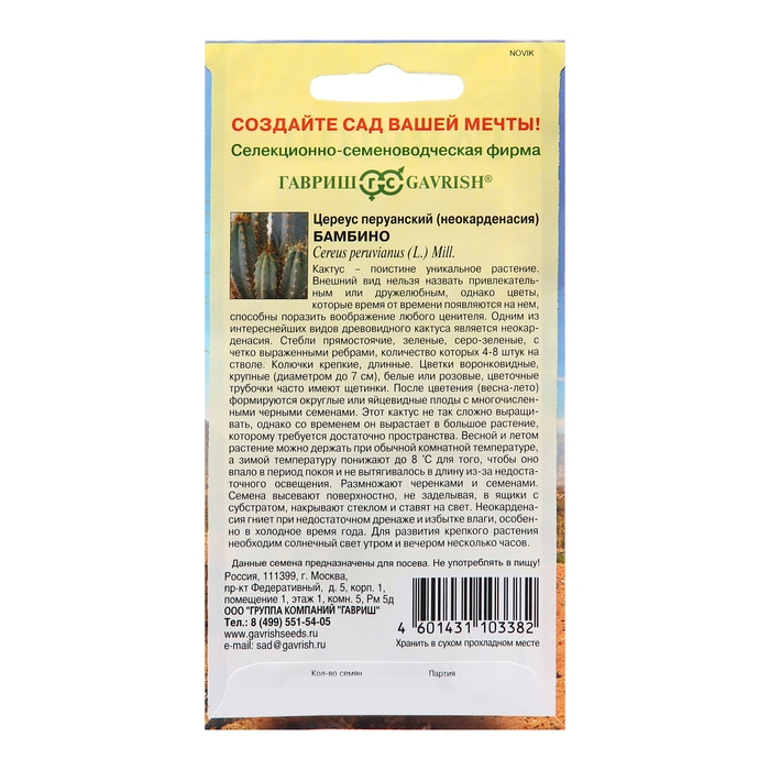 Семена Цереус "Бамбино", 4 шт.