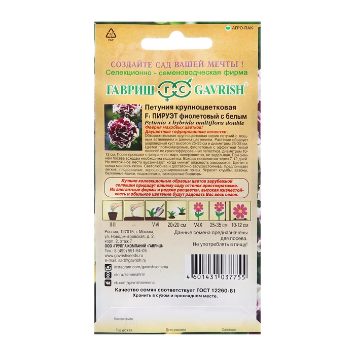 Семена Петуния "Пируэт", фиолетовый с белым, F1, 5 шт