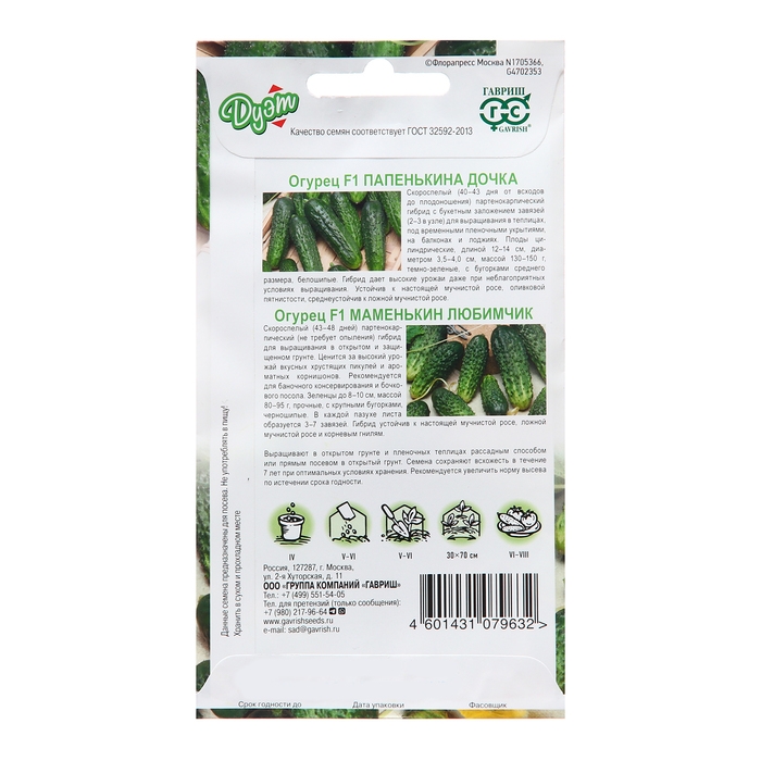 Семена Огурец "Папенькина дочка", 0,5 г + "Маменькин любимчик", 0,5 г
