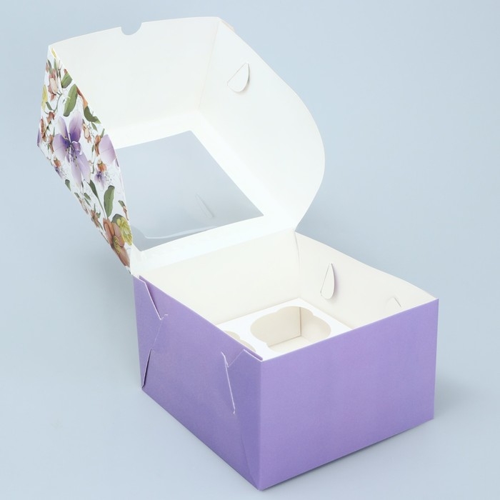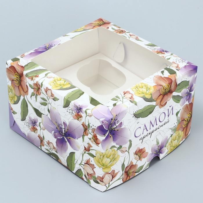 Коробка для капкейка, кондитерская упаковка, 4 ячейки «Самой прелестной», 16 х 16 х 10 см
