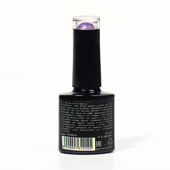 Гель-лак для ногтей трёхфазный LED/UV, 10мл, цвет В2-094 баклажан перламутровый