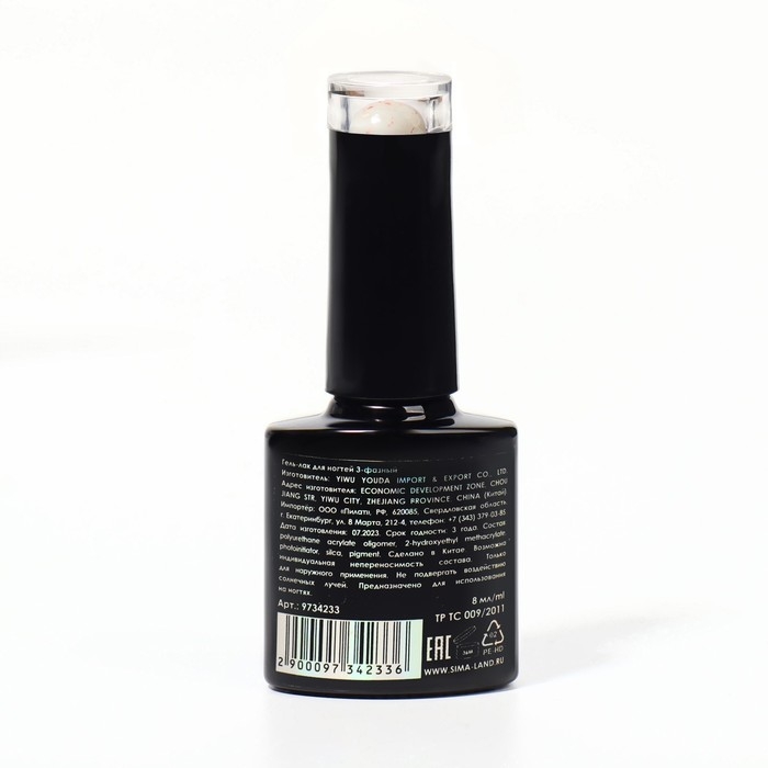 Гель-лак для ногтей трёхфазный LED/UV, 10мл, цвет 001 бело-розовый жемчужный