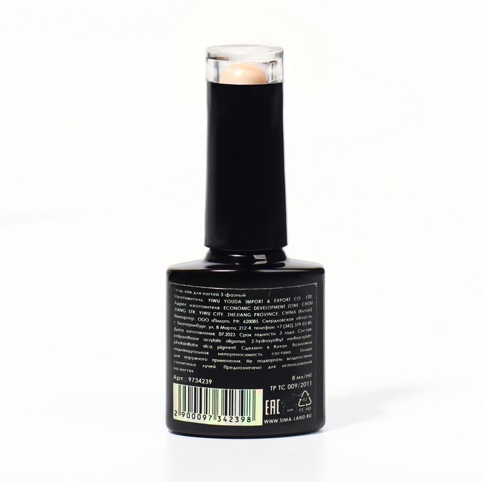 База камуфлирующая для ногтей, 3-х фазная, 8мл, LED/UV, цвет светло-персиковый (004)