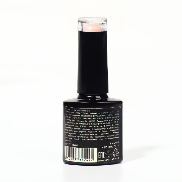 База камуфлирующая для ногтей, 3-х фазная, 8мл, LED/UV, цвет розово-персиковый (022)