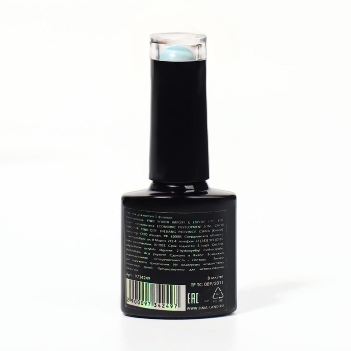 База камуфлирующая для ногтей, 3-х фазная, 8мл, LED/UV, цвет голубой (032)