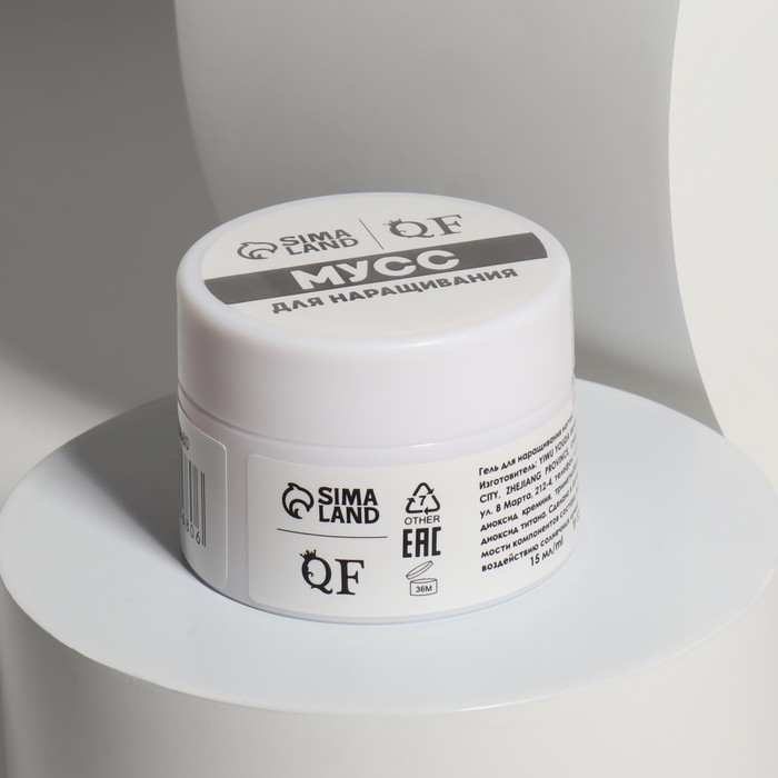 Мусс для наращивания ногтей, «SMART MOUSSE», 3-х фазный, 15мл, LED/UV, цвет белый/полупрозрачный (02)