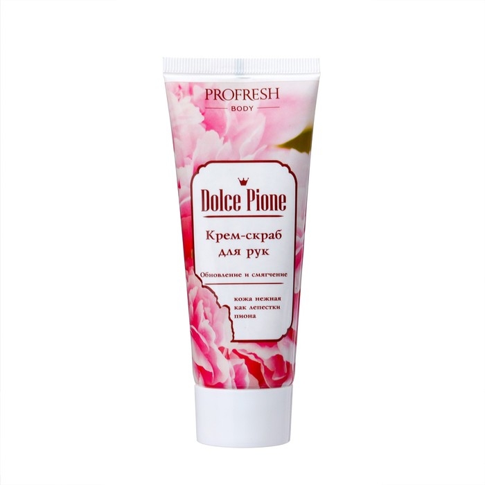 Крем-скраб для рук "Dolce Pione", 75 мл - содержит активные компоненты, такие как сахарные частицы и масло ши, которые помогают удалить омертвевшие клетки кожи рук, увлажнить и смягчить ее. Он также обеспечивает защиту кожи рук от вредного воздействия окружающей среды.