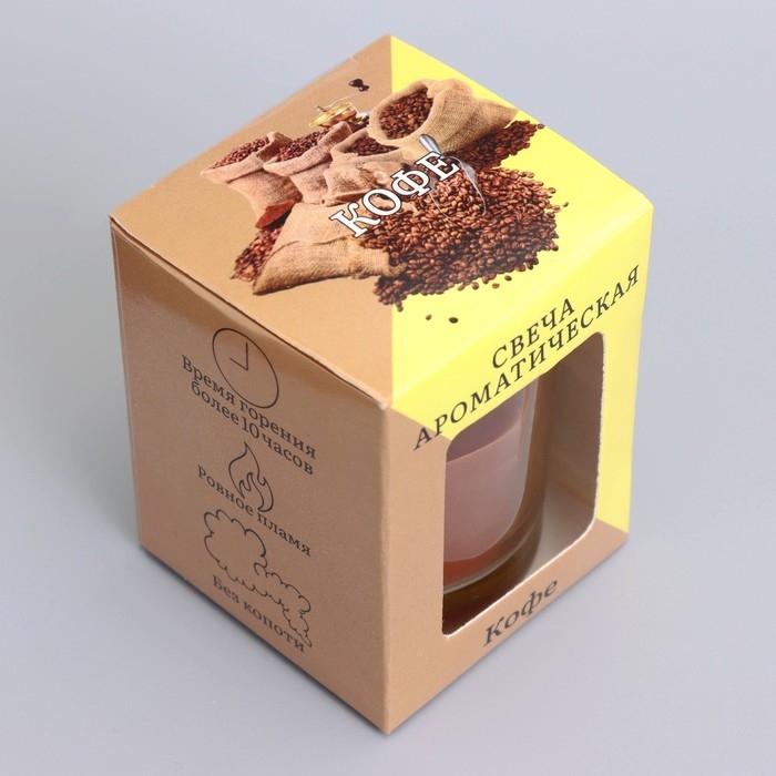 Ароматическая свеча «Кофе» размером 5 × 6 см изготовлена из натурального соевого воска и имеет тёплый аромат, который мгновенно наполняет комнату бодрящими нотами.