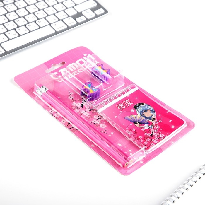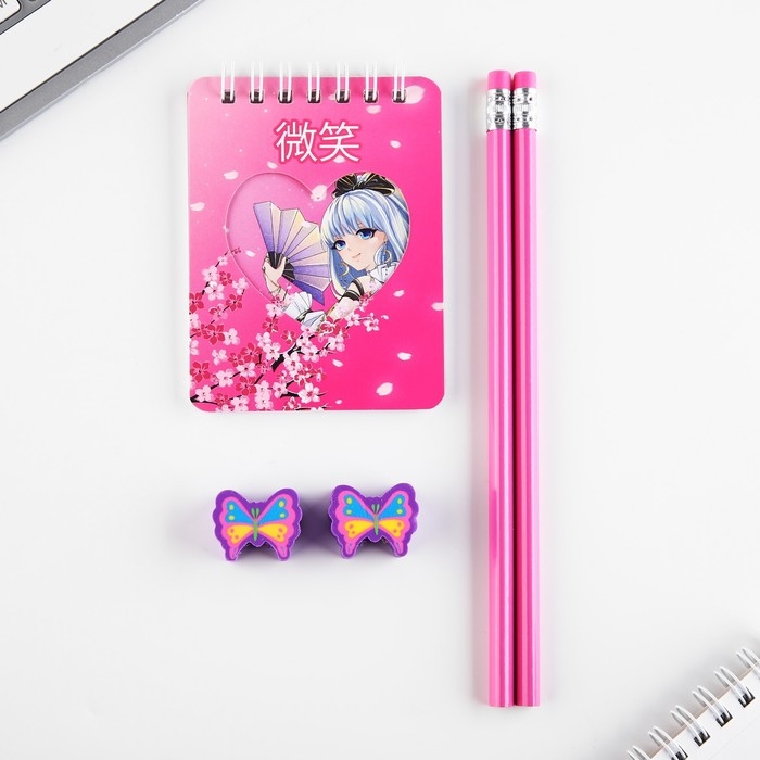 Подарочный набор «Аниме», карандаши 2 шт, ластики 2 шт, блокнот