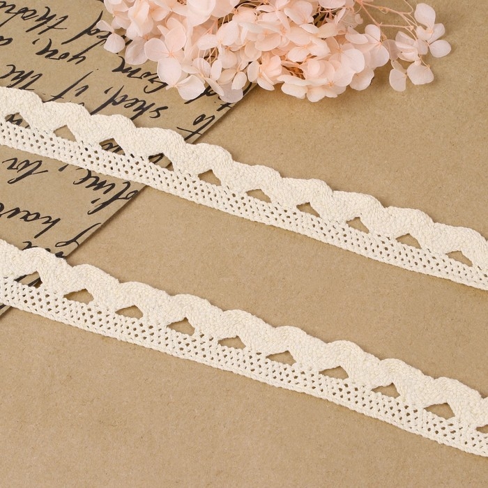 Кружево вязаное, 22 мм × 10 ± 1 м, цвет бежевый
