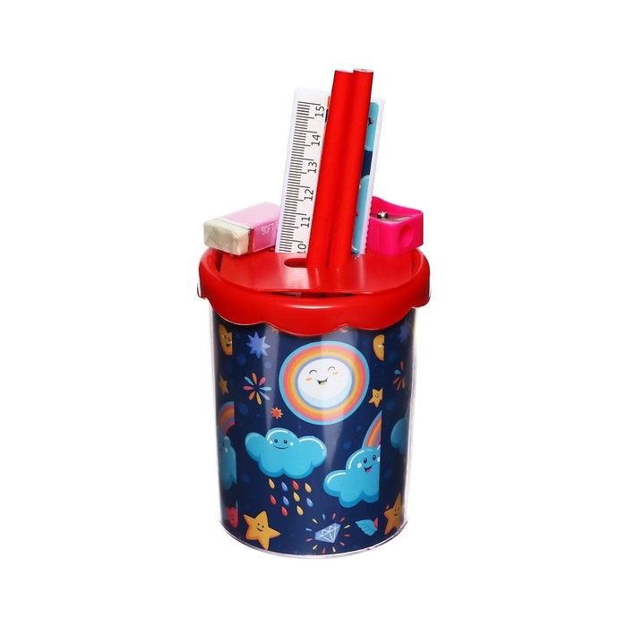 Набор настольный детский "Радуга" (подставка+2 каранд+линейка+точилка+ластик+блокнот 8 листов+ножницы)
