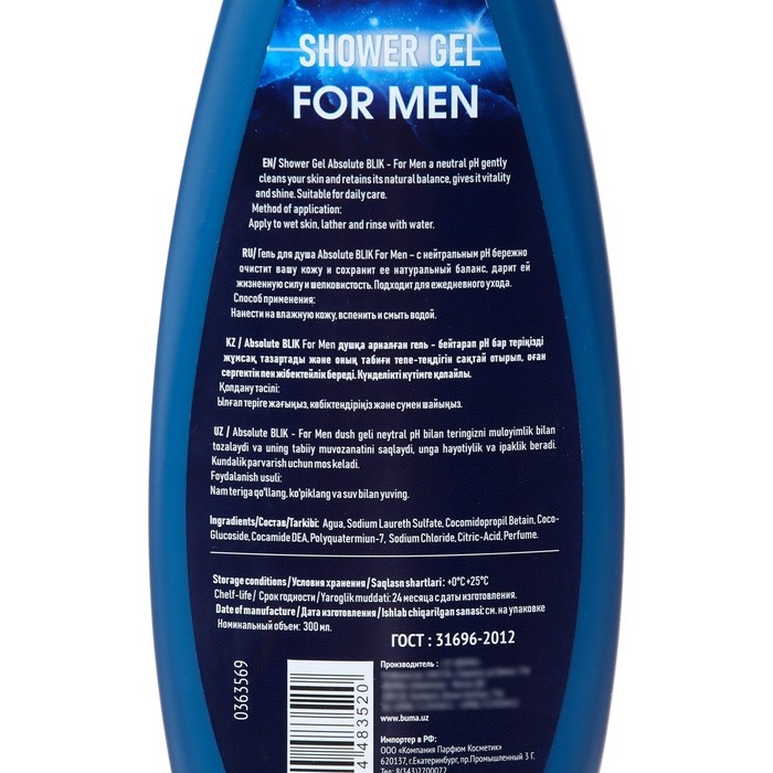 Гель для душа Absolute Blik – это ваш незаменимый помощник для быстрого восстановления сил, свежести и уверенности на весь день.