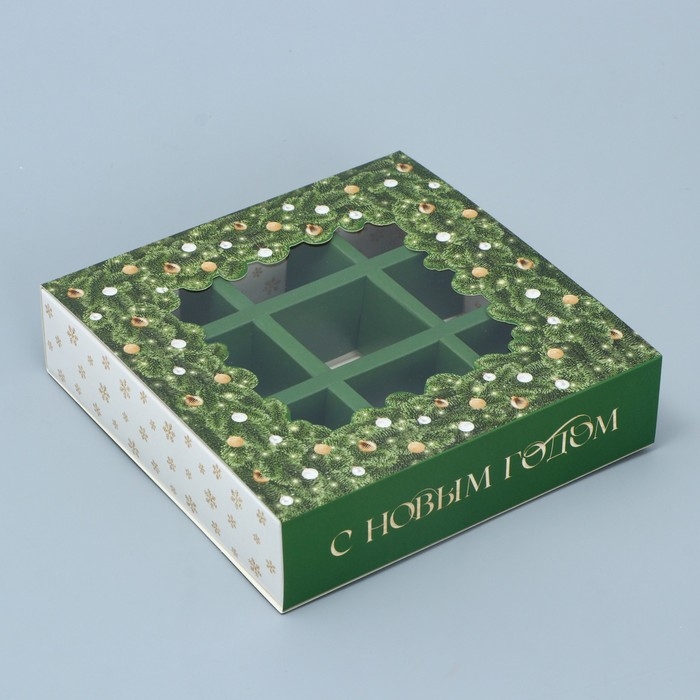 Коробка под 9 конфет с ячейками «С Новым годом» 14.5 х 14.5 х 3.5 см, Новый год