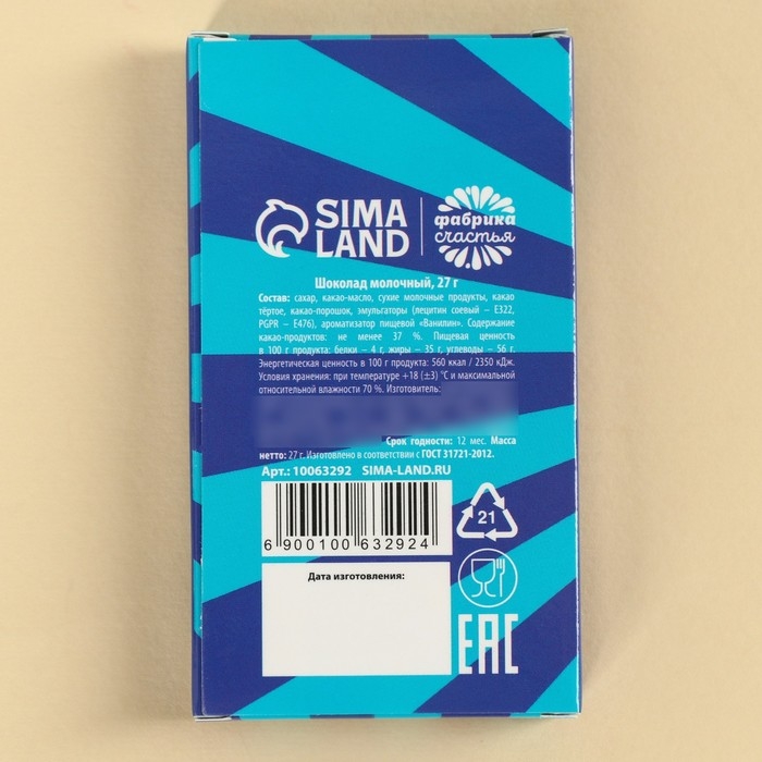 Шоколад молочный «От офисных страданий»: 27 г.