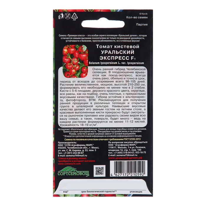 Семена Томат "Уральский экспресс", кистевой, 10 шт