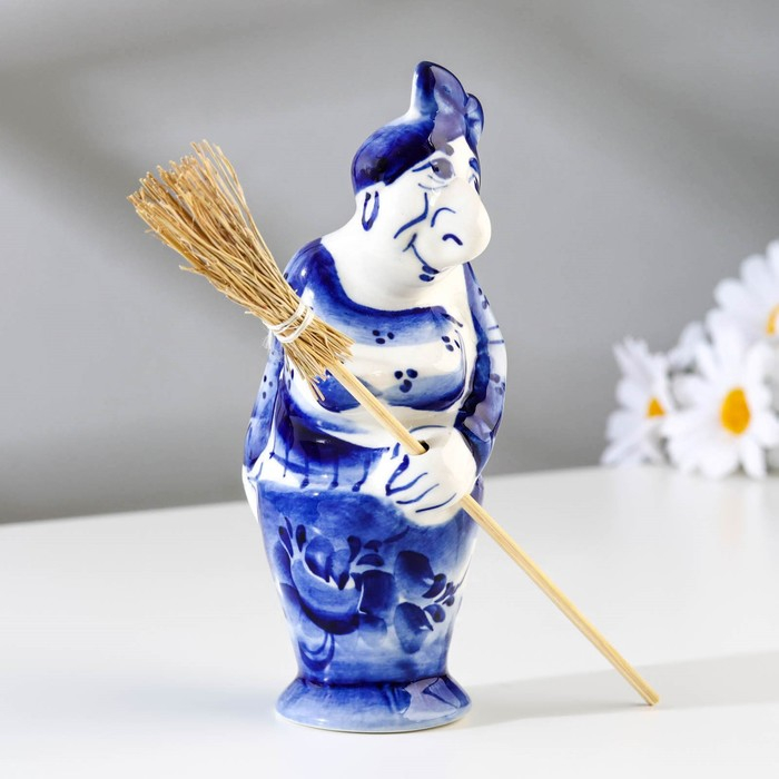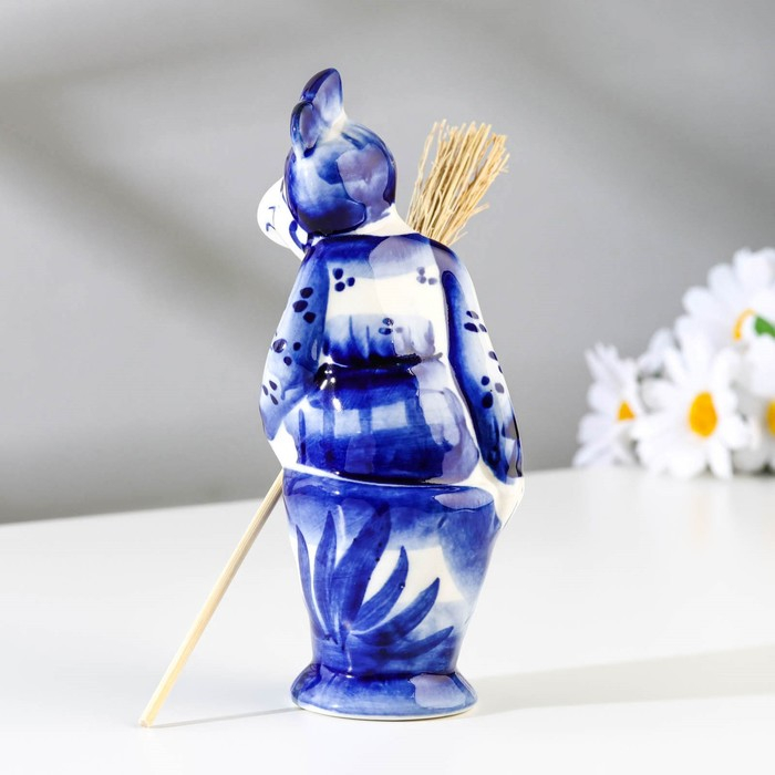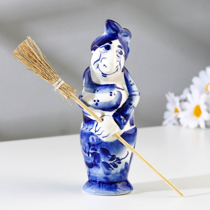 Сувенир "Баба Яга", c метлой, гжель