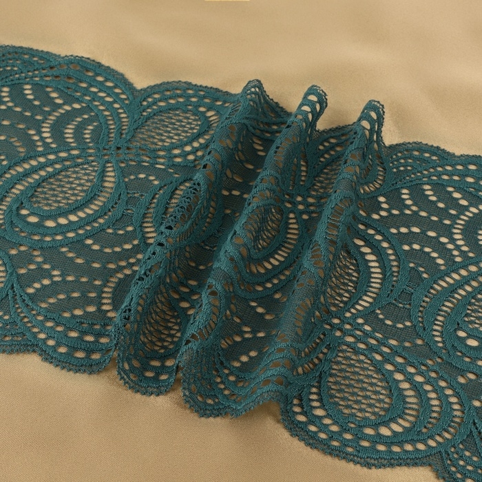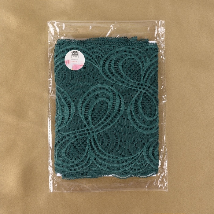 Кружевная эластичная ткань, 180 мм × 2,7 ± 0,5 м, цвет изумрудный