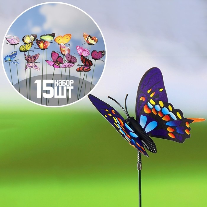 Штекер "Бабочка Атрис" 7х7см/30см, набор 15шт, МИКС