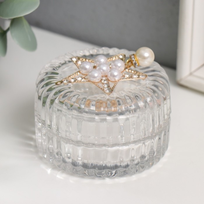 Шкатулка стекло "Звезда с жемчужинами" 6,5х6,5х5 см