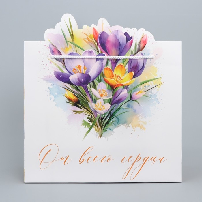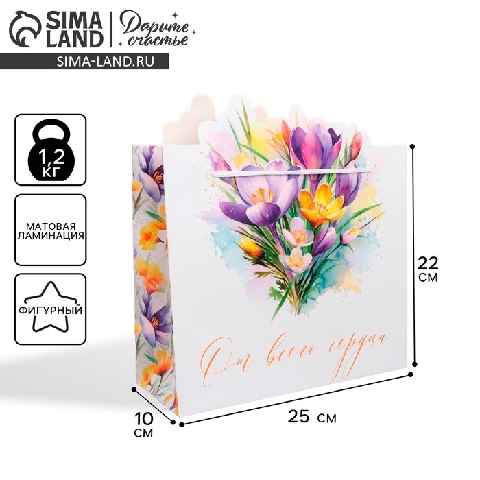 Пакет подарочный, упаковка, «От всего сердца», цветы, 25 х 26 х 10 см