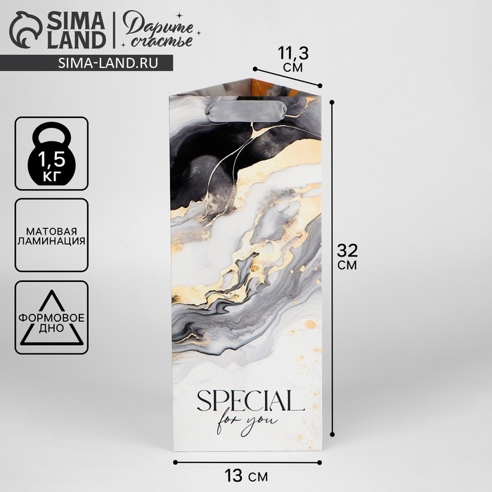 Пакет подарочный под бутылку, упаковка, «Подарок для тебя», 13 х 32 х 11.3 см