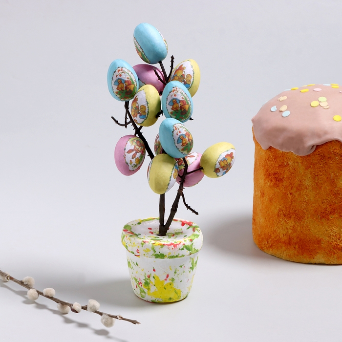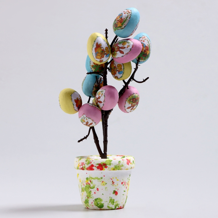 Пасхальный декор «Яйца в горшке» 8 × 10 × 25 см