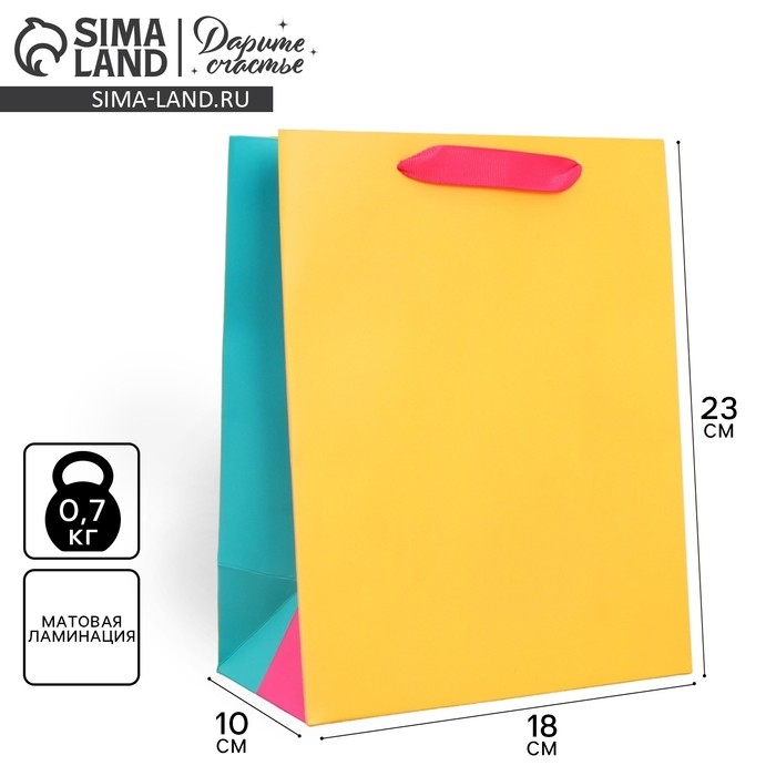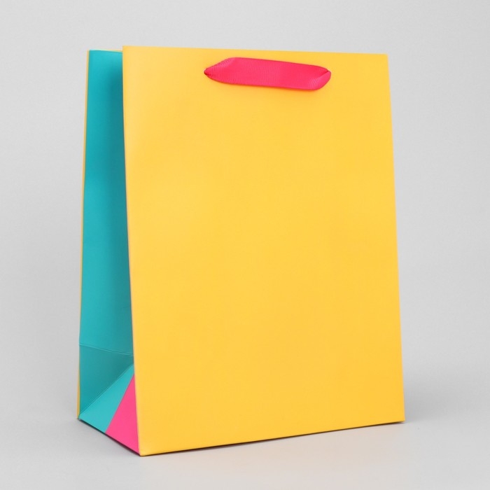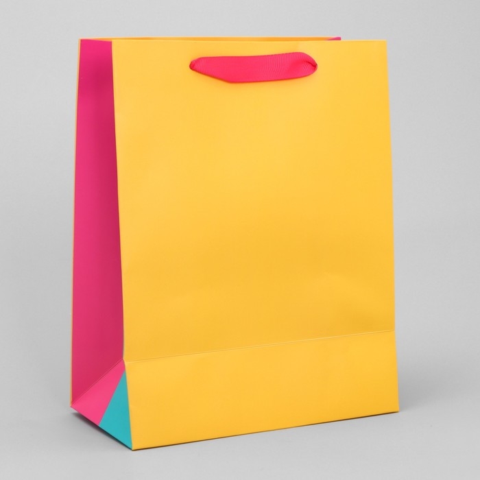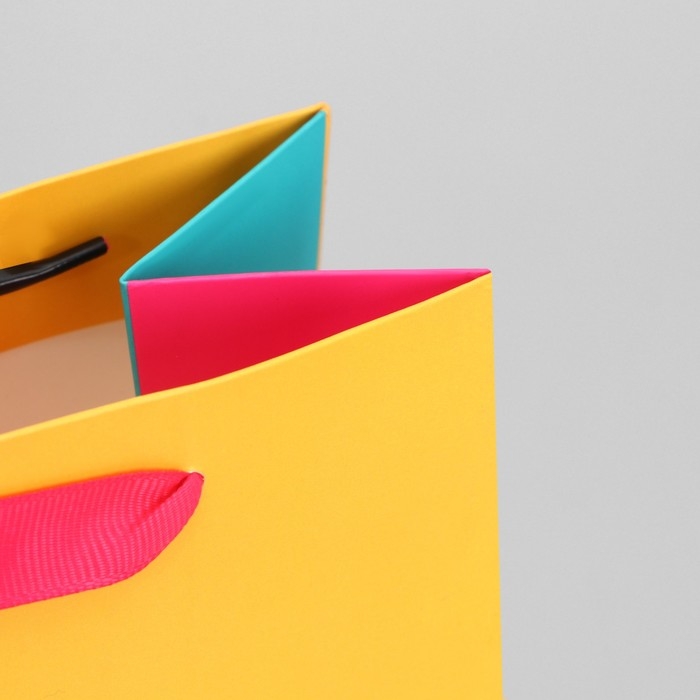 Пакет подарочный трёхцветный, упаковка, «Жёлтый-розовый-голубой», MS 18 х 23 х 10 см