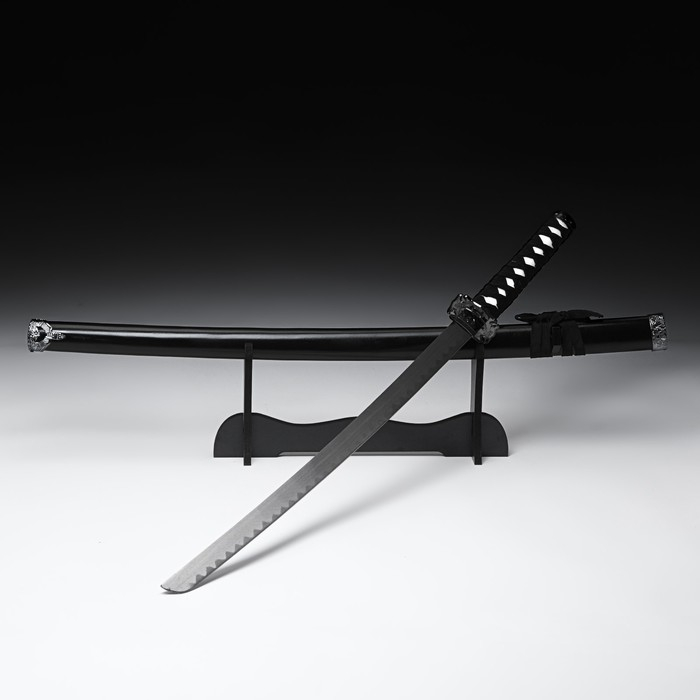 Сувенирное оружие "Катана Хизока" 100 см, клинок 60 см, чёрная, на подставке